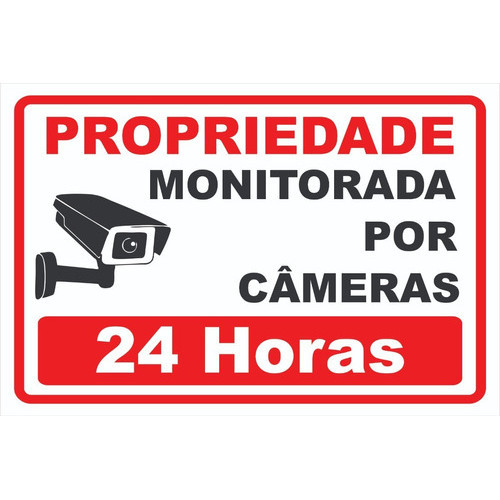 Kit 2 Placas Propriedade Monitorada Por Câmeras 24 Horas PS 20x30cm 1 mm Resistente