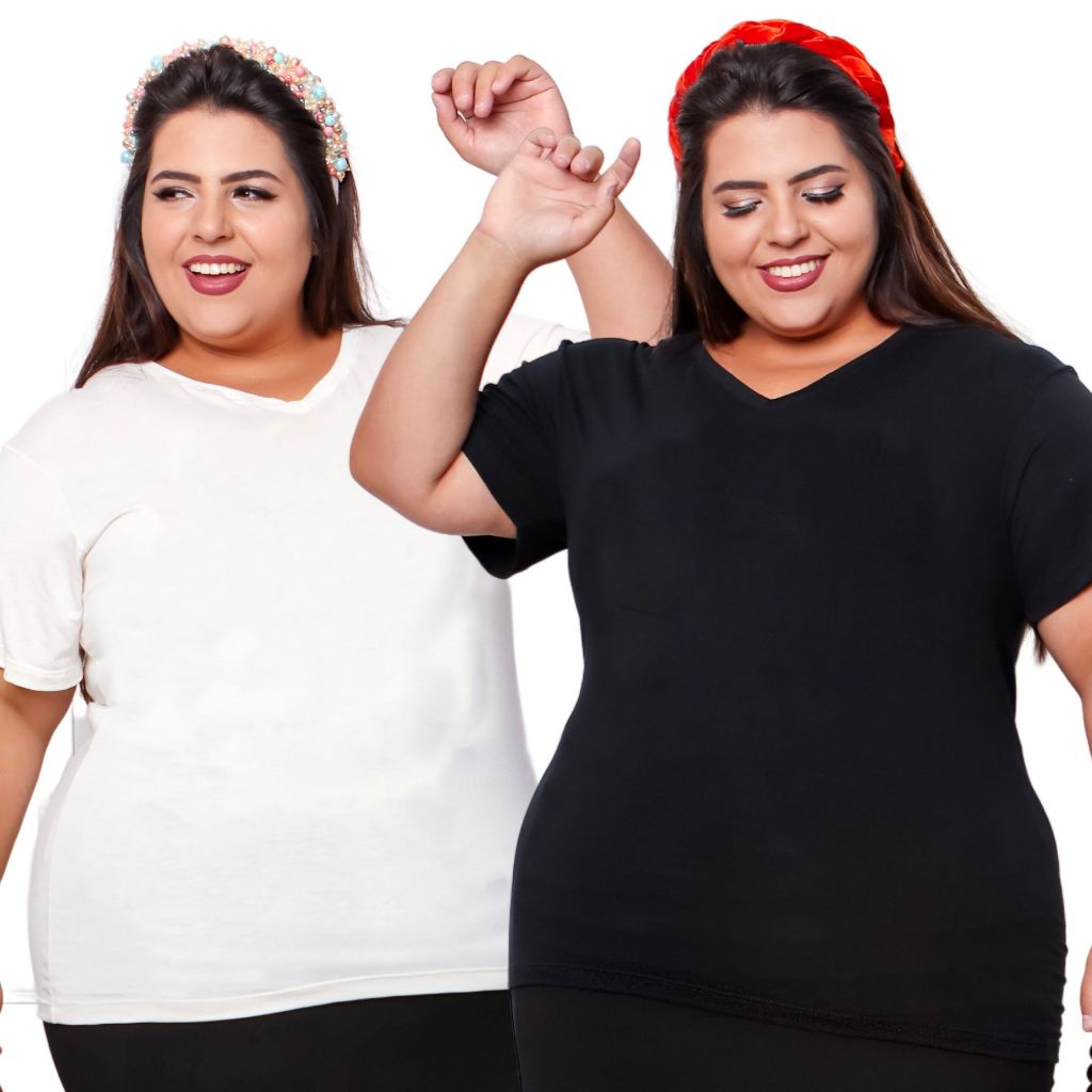Kit 2 Plus Size Blusa Básica Gola V Tecido Confortável Tamanhos do M ao G2 Várias Cores