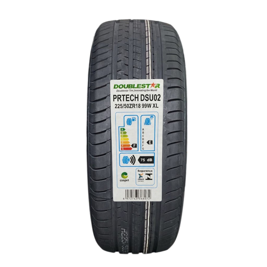 O pneu Doublestar PRTech 225/50R18 99W é a escolha ideal para quem busca segurança, desempenho e conforto. Com tecnologia avançada, ele oferece excelente aderência em piso seco e molhado, maior estabilidade em curvas e frenagem precisa. Seu índice de carga reforçado (99) garante maior resistência, sendo perfeito para SUVs compactos, sedãs médios e modelos premium que utilizam aro 18. Especificações Técnicas Medida: 225/50R18 Largura: 225 mm Perfil: 50% da largura Aro: 18 polegadas Índice de Carga: 99 (suporta até 775 kg por pneu) Índice de Velocidade: W (até 270 km/h) Modelo: Doublestar PRTech Construção: Radial Categoria: Passeio / SUV Desenho da banda: projetado para estabilidade, menor ruído e excelente tração em piso molhado Tecnologia: composição otimizada para maior durabilidade e desgaste uniforme Compatibilidade com Veículos A medida 225/50R18 é usada em diversos modelos no Brasil, incluindo: BMW X1 BMW Série 3 (versões com aro 18) Audi A4 Audi A5 Mercedes-Benz Classe C Mercedes-Benz GLA Honda CR-V Honda HR-V Touring Toyota Camry Chevrolet Equinox Volvo S60 Hyundai Tucson / New Tucson Compatibilidade pode variar conforme versão. Sempre confira no manual do veículo. FAQ – Perguntas Frequentes • Esse pneu é silencioso? Sim, o desenho otimizado da banda PRTech reduz ruídos, proporcionando condução mais confortável. • É bom para estrada? Sim! Com índice W e estrutura reforçada, oferece excelente estabilidade e segurança em velocidades elevadas. • Funciona bem em chuva? Sim, possui canais que escoam água com eficiência, evitando aquaplanagem. • Serve em qualquer veículo aro 18? A medida deve ser compatível com a original ou equivalente do veículo. Consulte o manual. • Esse pneu é reforçado? Sim, o índice de carga 99 indica maior resistência, ideal para SUVs compactos e sedãs mais pesados. • A dirigibilidade melhora? Sim, o perfil 50 combinado com a largura 225 garante excelente estabilidade, resposta rápida e conforto.