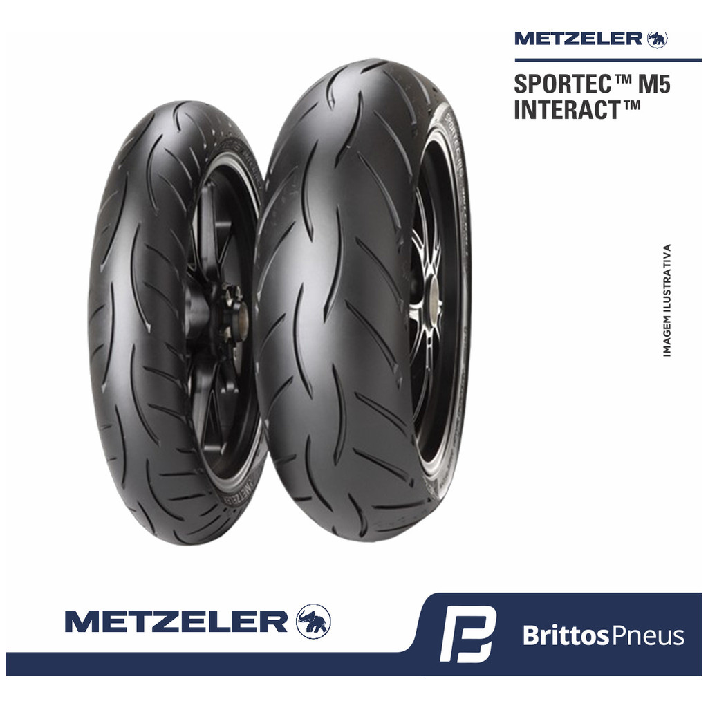 ** PRODUTO NOVO ** GARANTIA DE FÁBRICA DE 5 ANOS ** EMISSÃO DE NF **O FATURAMENTO É REALIZADO APENAS PARA CONSUMO, SENDO VETADO O FATURAMENTO PARA REVENDA. ** SOBRE O PNEU: Comprar pneu para moto esportiva é um assunto muito sério, pois precisa ser um pneu confiável, resistente e com boa durabilidade, que resista a altas temperaturas e velocidades. Pensando nisso, a Metzeler desenvolveu o Sportec M5 Interact, que é um pneu excepcional para uso em motos esportivas de alta cilindrada. A construção desse modelo possui cordas de aço com tensão variável e distribuidas em 5 zonas, que proporcionam ação desde o centro da banda de rodagem até os ombros do pneu, o que representa comportamento sensível durante manobras, curvas e mudanças de direção, mesmo em alta velocidade. A tensão variável nas cordas é extremamente importante, pois enquanto a alta tensão atua na redução do movimento do composto do pneu e garante pressão e máximo contato do pneu com a pista, a baixa tensão é responsável por criar flexibilidade e absorver mais energia, como em impactos ou situações onde isso seja exigido do pneu, seja em inclinações médias ou extremas. Desta forma, cria-se um conjunto que proporciona aderência altíssima em situações de uso esportivo e garante a alta durabilidade, pois em uso nas retas, por exemplo, a alta tensão contribui para que a durabilidade não seja comprometida, já que o desgaste é controlado. O desempenho em pista molhada também é um destaque, resultante da banda de rodagem com sulcos de tamanho variável, que aceleram a velocidade da água na drenagem, expulsando da área de contato com a pista. O composto do Metzeler M5 Interact é uma junção de sílica e uma mistura de resinas, que geram rápido aquecimento e um excelente comportamento no molhado. Garantia de fábrica: 5 anos