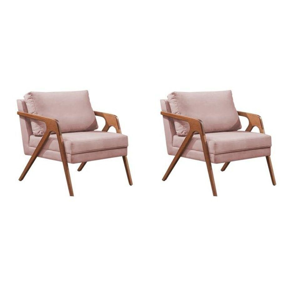 Kit 2 Poltronas Decorativa Mona Luxo Veludo Rosê Base Madeira Maciça