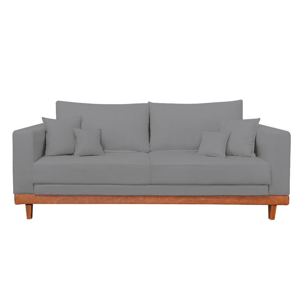 Kit 2 Poltronas Living + Sofá 3 Lugares com Base Madeira Linho