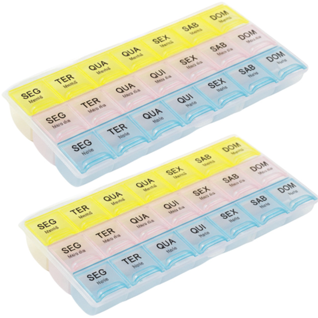 Kit 2 Porta Comprimidos Semanal 3x ao Dia | Organizador Diário de Remédios Compacto Viagem e Idosos