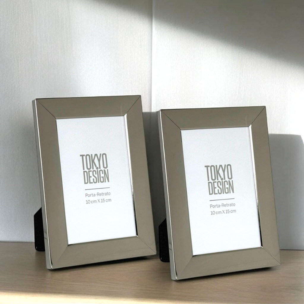 Kit 2 Porta Retratos 10x15 De Aço Inox E Vidro Luxe Rose Golg / Prata / Dourado / Grafite