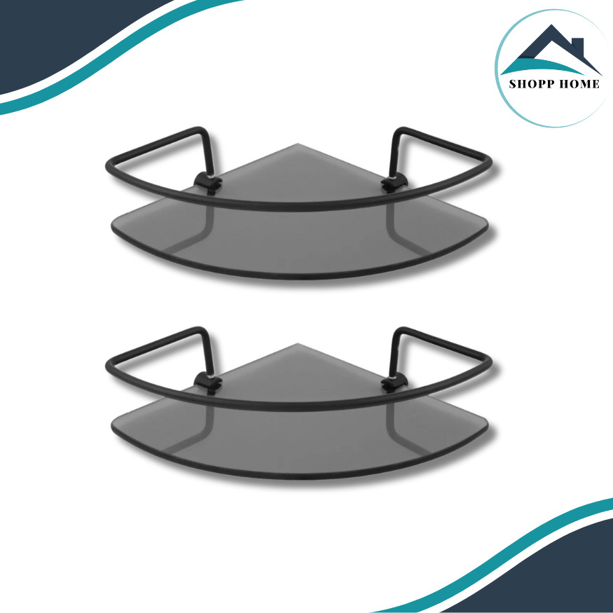 Kit 2 Porta Shampoo de Canto para Banheiro – Prateleira em Vidro Fumê com Suporte Preto