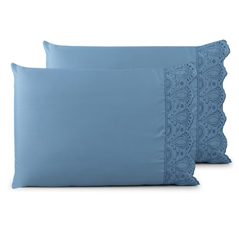KIT 2 PORTA TRAVESSEIROS PAR DE FRONHA COM BORDADO INGLÊS
