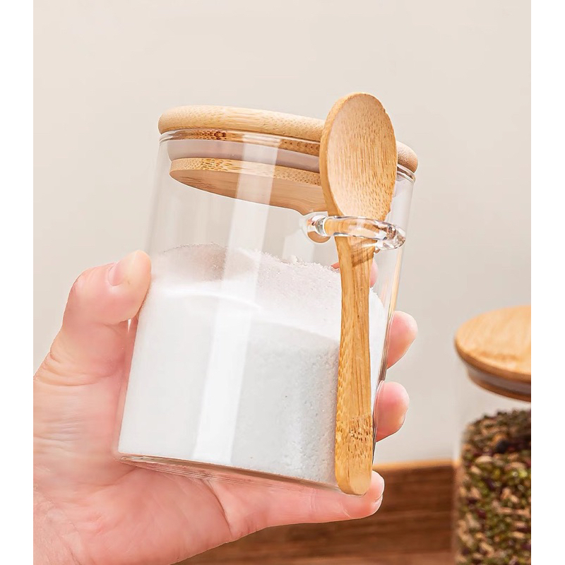 Características: - Material: Vidro e Bambu - Tamanho : 10cm altura 8,5cm diâmetro ( Com a alça porta colher aproximado: 13cm diâmetro) - Tem capacidade para aproximadamente 450 ml - Quantidade: Embalagem com 1 unidade (1 Pote; 1 Colher; 1 Tampa)