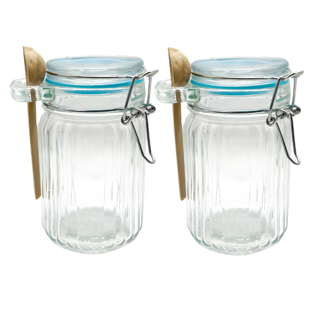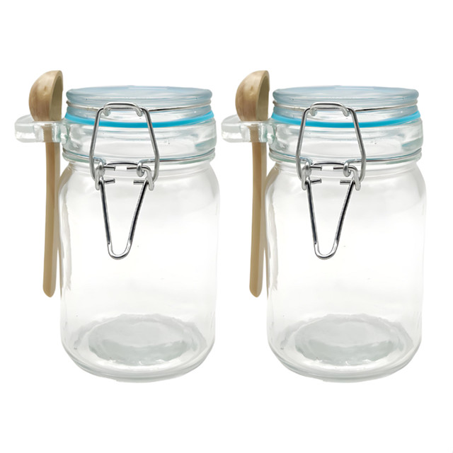 Kit 2 Pote De Vidro Porta Tempero Hermético Tampa com Trava 280ml Com Colher De Bambu