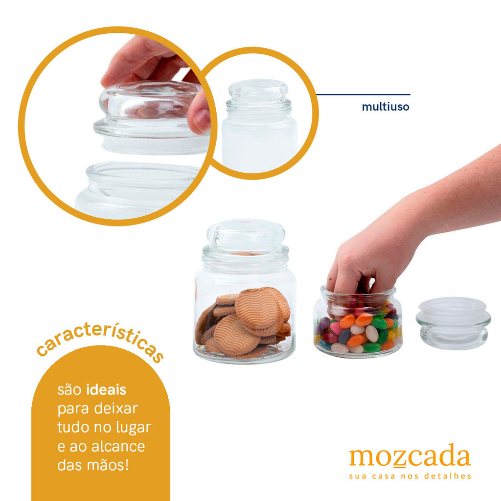 Kit 2 potes de vidro com tampa herméticos redondos 350ml e 500ml - Mozcada