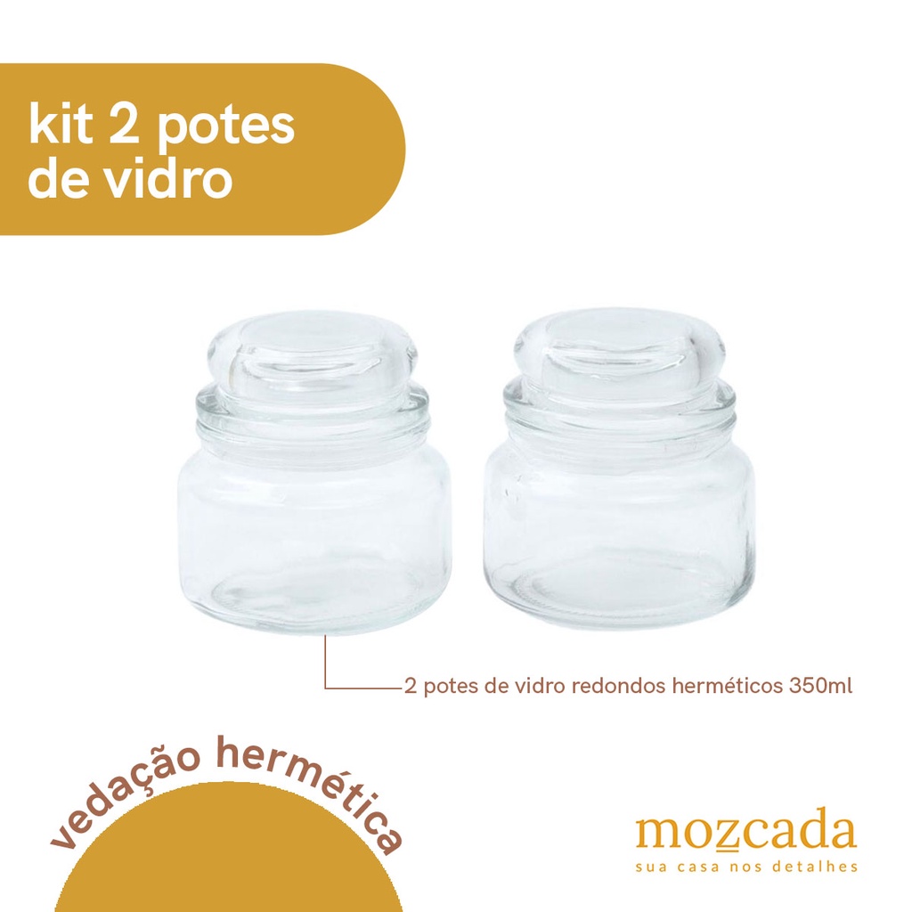 Kit 2 potes de vidro com tampa herméticos redondos 350ml - Mozcada