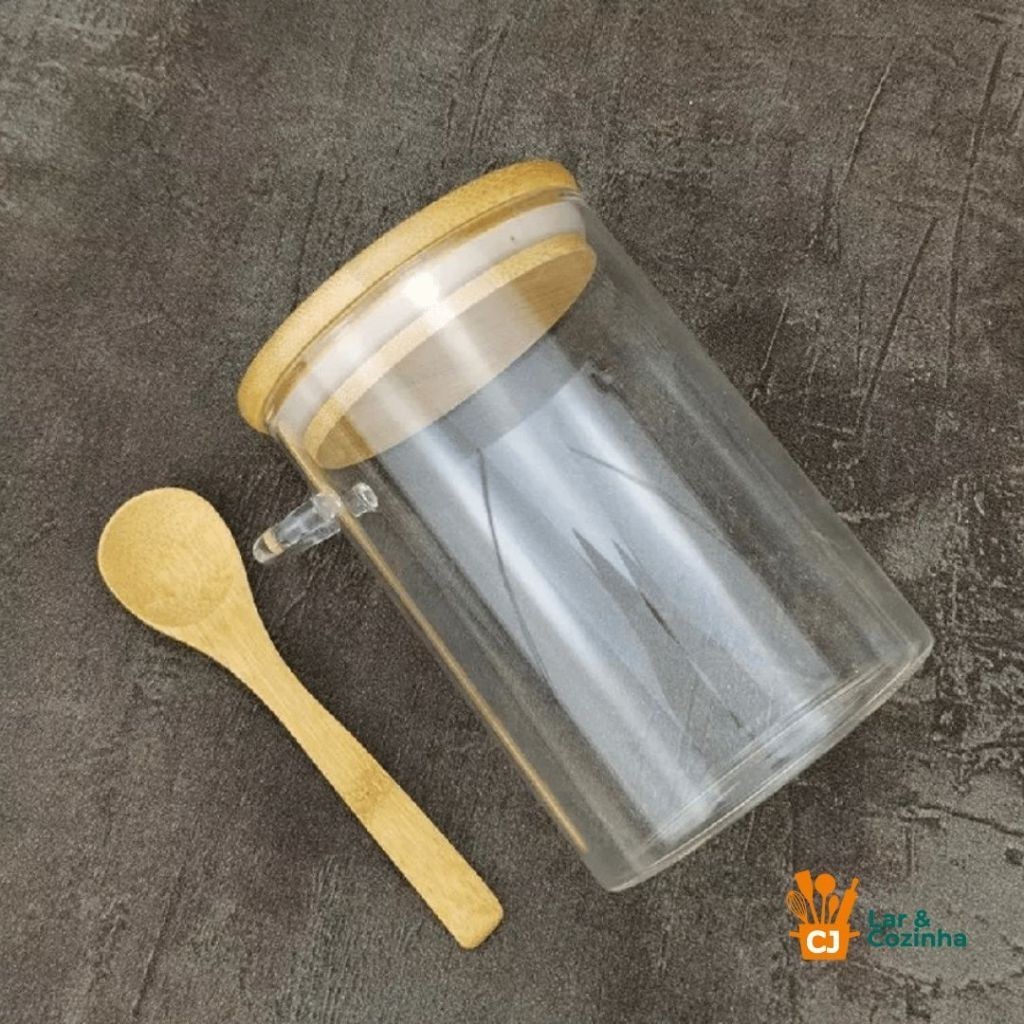 Kit 2 Potes de Vidro Herméticos com Tampa de Bambu Pote de 250 ml Pote de 400 ml com colher