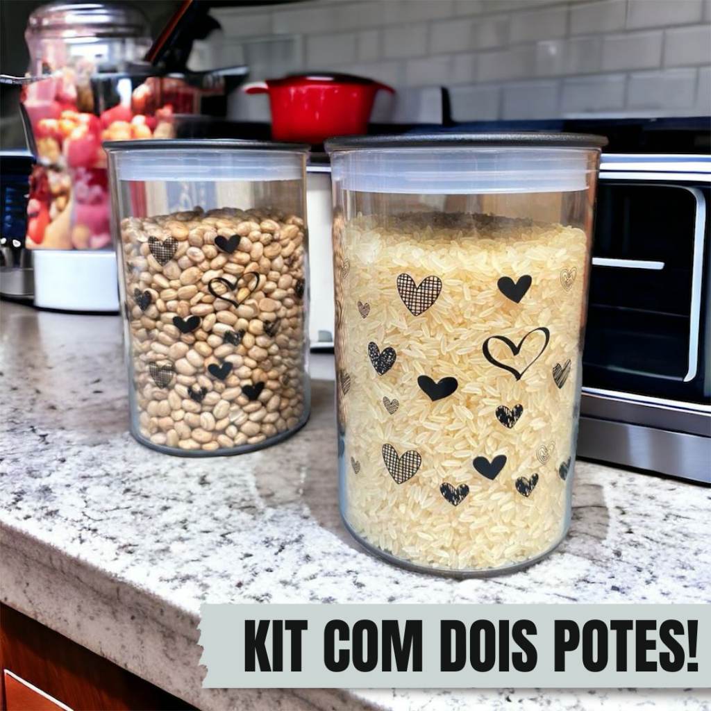 Kit 2 Potes Herméticos 1L Acrílico Decorados para Mantimentos | Vedação Total