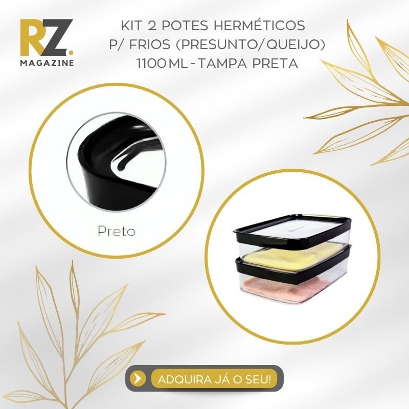 Kit 2 Potes Herméticos para Frios Empilháveis com Tampa Preta Helsim Kit com 2 Potes Herméticos Helsim para Frios (Presunto/Queijo), Bolachas 1,1 Litros (1100 mL) – Praticidade, Vedação e Estilo para seus Alimentos O Kit 2 Potes Herméticos para Frios Empilháveis com Tampa Preta Helsim foi criado para quem busca organização e praticidade com elegância na rotina da cozinha. Com design retangular e formato mais baixo, é ideal para armazenar frios, queijos fatiados, presuntos, embutidos, torradas, biscoitos e outros alimentos secos, preservando o sabor e a textura por muito mais tempo graças à sua vedação eficiente. A tampa na cor preta traz um toque de sofisticação e contraste, combinando com qualquer estilo de cozinha — do minimalista ao moderno. Parte da Linha Modulus Helsim, o kit de dois potes une beleza, funcionalidade e durabilidade, e foi selecionado pela curadoria da RZ Magazine para quem deseja elevar o padrão de organização e cuidado na cozinha. Por que escolher o Kit 2 Potes Herméticos para Frios Empilháveis com Tampa Preta Helsim? • Vedação eficiente, que preserva a frescura e o sabor dos alimentos por mais tempo. • Design retangular e compacto, ideal para frios, queijos, embutidos e alimentos delicados. • Formato empilhável, otimizando o espaço na geladeira, gavetas e armários. • Tampa preta elegante, que adiciona um toque de estilo e combina com qualquer ambiente. • Compatível com lava-louças, facilitando a limpeza e o uso diário. • Qualidade Helsim, reconhecida pela resistência e longa durabilidade. Especificações do Produto • Capacidade (cada pote): 1100 mL • Quantidade: 2 unidades • Conteúdo da embalagem: 2 potes de 1100 mL cada • Altura aproximada (cada pote): 6,3 cm • Comprimento aproximado (cada pote): 22,4 cm • Largura aproximada (cada pote): 15,9 cm • Cor da tampa: Preta • Tipo de uso: Armazenamento de frios, queijos, presuntos, embutidos, biscoitos e alimentos secos • Marca: Helsim • Linha: Modulus Recomendações de Uso • Ideal para armazenar frios, queijos, presuntos, embutidos, biscoitos e alimentos secos. • Evite contato direto com fontes de calor ou superfícies quentes. • Pode ser lavado em lava-louças com segurança. • Armazene em local seco e ventilado após o uso. Cuidados Importantes • Não utilizar em forno nem micro-ondas. • Evitar quedas ou impactos fortes. • Não usar esponjas abrasivas na limpeza. A Essência da Organização Mais do que simples recipientes, o Kit 2 Potes Herméticos para Frios Empilháveis com Tampa Preta representa a união entre design funcional e sofisticação. Com a qualidade Helsim e a curadoria RZ Magazine, transforma o armazenamento de alimentos em uma experiência prática, higiênica e elegante — ideal para uma cozinha mais organizada e inspiradora. Compra 100% Garantida Na RZ Magazine, sua satisfação é nossa prioridade. Oferecemos: • Compra 100% garantida pela Shopee. Comprou, chegou! • Entrega rápida para todo o Brasil. • Postagem em até 24 horas úteis após a confirmação do pagamento. • Nota fiscal em todas as compras. • Atendimento especializado pós-venda. Perguntas Frequentes (FAQ) 1. Posso armazenar frios e queijos neste Kit 2 Potes Herméticos para Frios Empilháveis com Tampa Preta Helsim? Sim. Os potes foram desenvolvidos especialmente para armazenar frios, queijos e embutidos, mantendo a vedação e o frescor por mais tempo. 2. Os potes podem ir à lava-louças? Sim. Corpo e tampa podem ser lavados com segurança na lava-louças. 3. A vedação é realmente eficiente? Sim. Os potes possuem vedação eficiente, que ajuda a conservar os alimentos e protegê-los da umidade. 4. É possível empilhar diferentes tamanhos? Sim. Os potes da Linha Modulus foram projetados para empilhamento estável entre tamanhos variados. 5. As tampas de outras cores são compatíveis? Sim. As tampas da Linha Modulus possuem encaixe universal entre os modelos de mesma capacidade. Organize, preserve e valorize sua cozinha com o Kit 2 Potes Herméticos para Frios Empilháveis com Tampa Preta Helsim: design, praticidade e elegância em dose dupla. RZ Magazine e Helsim — onde design, praticidade e elegância se encontram para facilitar o seu dia a dia.