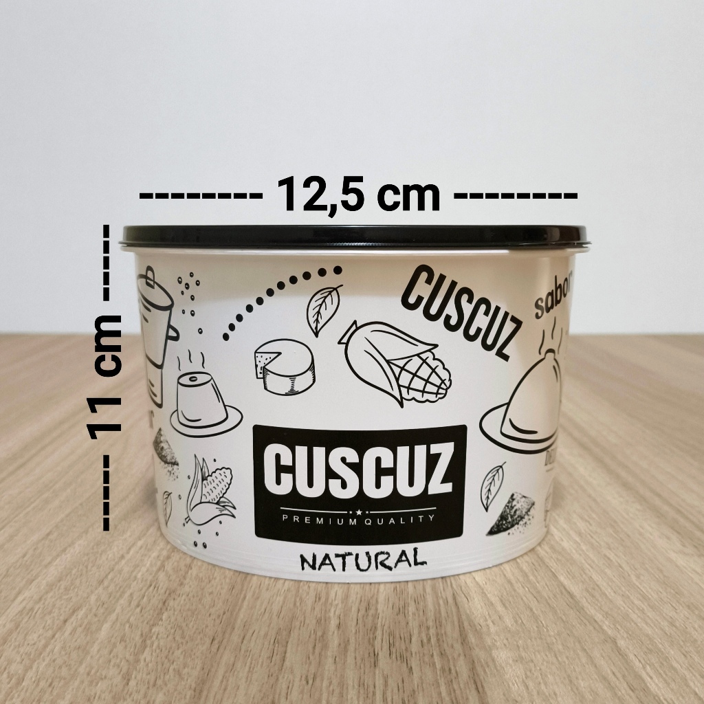 O kit de 2 potes plásticos de 2 litros preto e branco para cuscuz e tapioca é um produto prático para organizar a cozinha, especialmente itens típicos da culinária nordestina. Eles são pensados para manter o frescor e facilitar o manuseio de farinhas finas. Material: Polipropileno (plástico atóxico e BPA Free). Vedação: possui tampa hermética para evitar a entrada de umidade e formigas. Visual: vêm com estampas personalizadas ("Cuscuz" e "Tapioca") para facilitar a identificação. Os potes podem ser lavados normalmente com a utilização de esponja macia para não riscar os desenhos. São empilháveis, resistentes e podem ir ao micro-ondas ou freezer, facilitando o armazenamento seco de mantimentos. Capacidade: 2 litros Dimensões aproximadas (AxD): 11 cm x 16,5 cm. E ainda você apodem adquirir os dois potes juntos ou comprá-los individualmente.