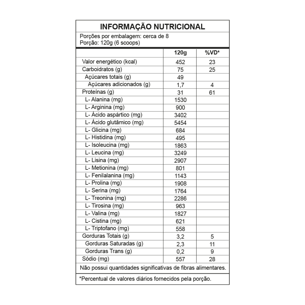 Aumente seu desempenho e potencialize seus resultados com o Whey Protein Concentrado da Samurai Nutrition. Cada porção de 120 g (6 scoops) oferece proteínas de alta qualidade para auxiliar na recuperação muscular e no ganho de massa magra. ---------------------------------- Sugestão de Consumo: ---------------------------------- Misture 12 colheres de sopa (120 g) em 150 a 200 ml de água. Consuma uma vez ao dia ou conforme a recomendação de um profissional. ---------------- Benefícios: ---------------- • Auxilia na recuperação muscular. • Promove o ganho de massa muscular magra. • Ideal para antes ou após o treino. • Ingredientes: aromatizantes, edulcorantes e outros componentes. -------------------- Ingredientes: -------------------- Proteína concentrada do soro de leite, maltodextrina, aromatizante e edulcorante sucralose. NÃO CONTÉM GLÚTEN. CONTÉM LACTOSE. ALÉRGICOS: CONTÉM DERIVADOS DE LEITE.