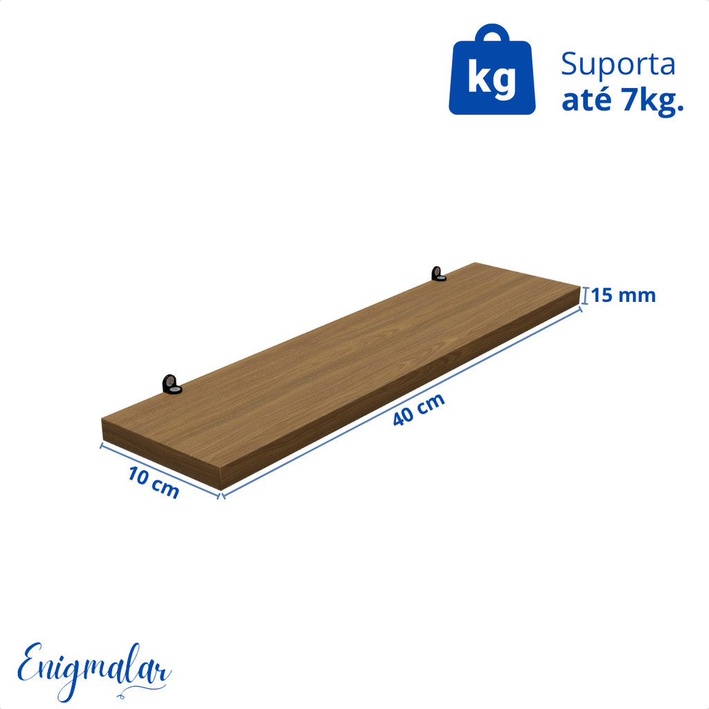 Kit 2 Prateleira Freijó 40X10 + Suporte Flutuante Mdf Organizadora Decoração Cozinha Banheiro Sala