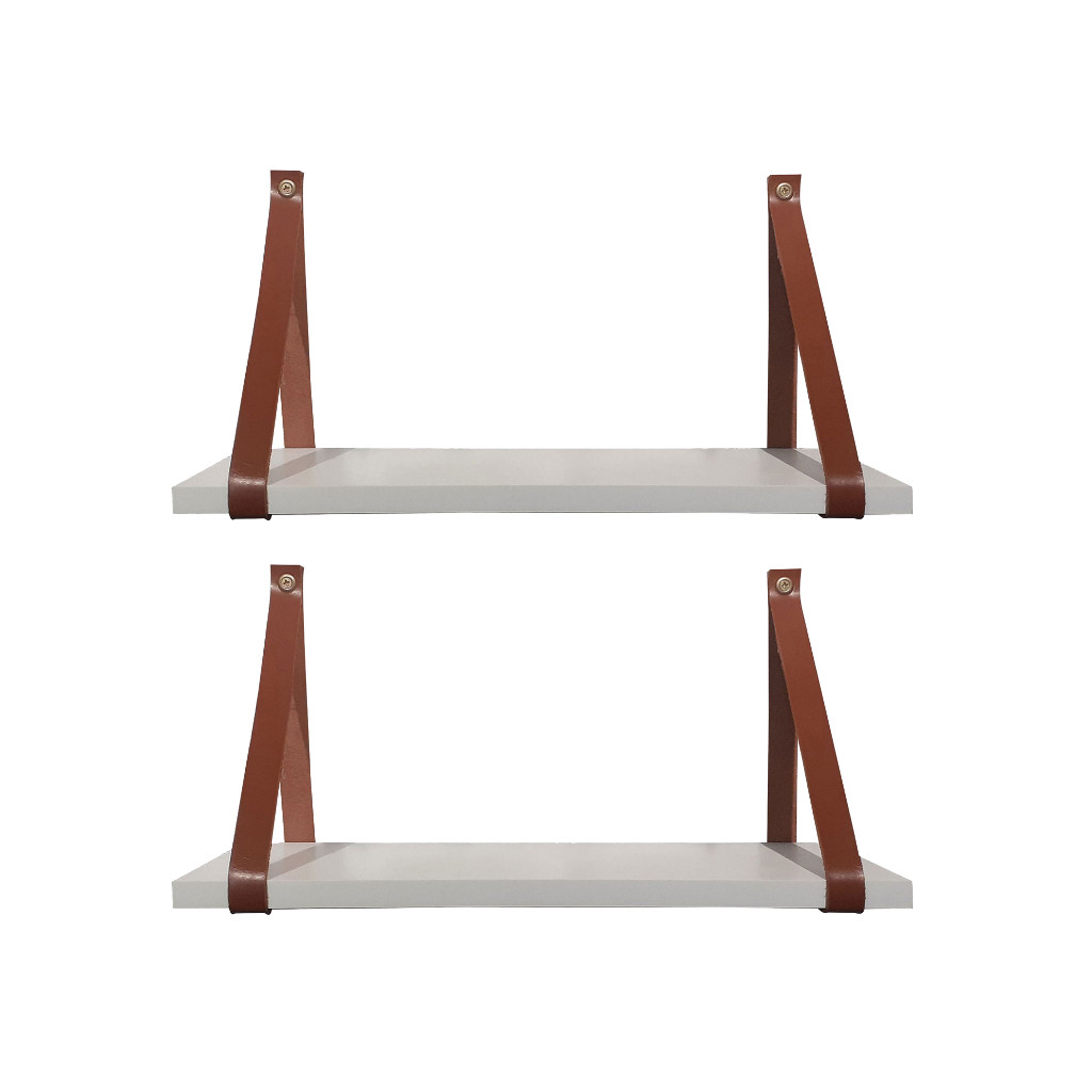 Kit 2 Prateleira MDF Branca 30X13 Alça Marrom Couro Ecológico Resistente Decoraçao Para Sala