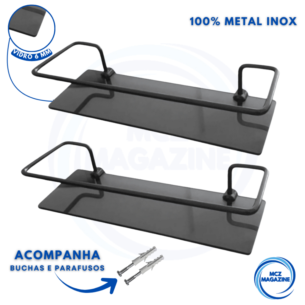 | Kit 2 Prateleira Porta Shampoo Preto Banheiro Alumínio Vidro Reto A... este produto | R$ 28,98 | 51% | 4.9/5 | 143 |