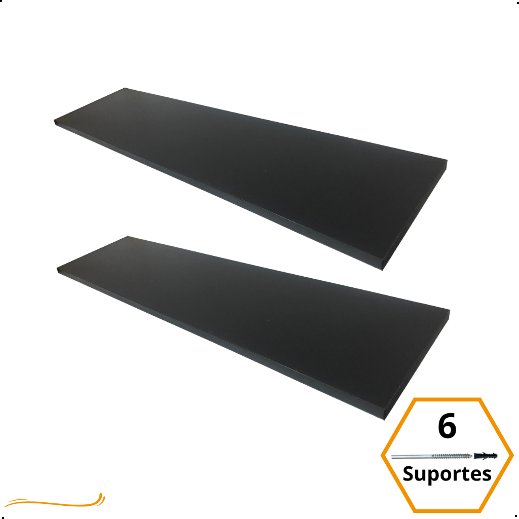 Kit 2 Prateleira Preta 80X20 + Suporte Flutuante Mdf Organizadora Decoração Cozinha Banheiro Sala
