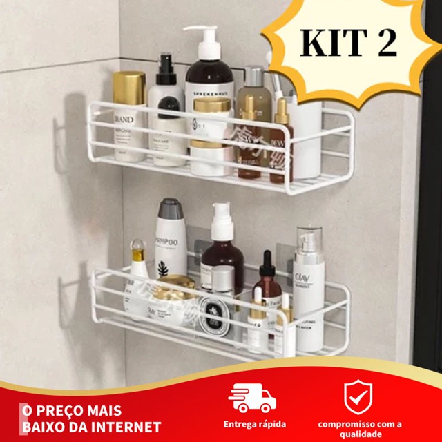 Kit 2 Prateleiras Suporte Com Alto Adesivos Para Parede Banheiro Cozinha Shampoo E Sabonete Prateleira de Panheiro