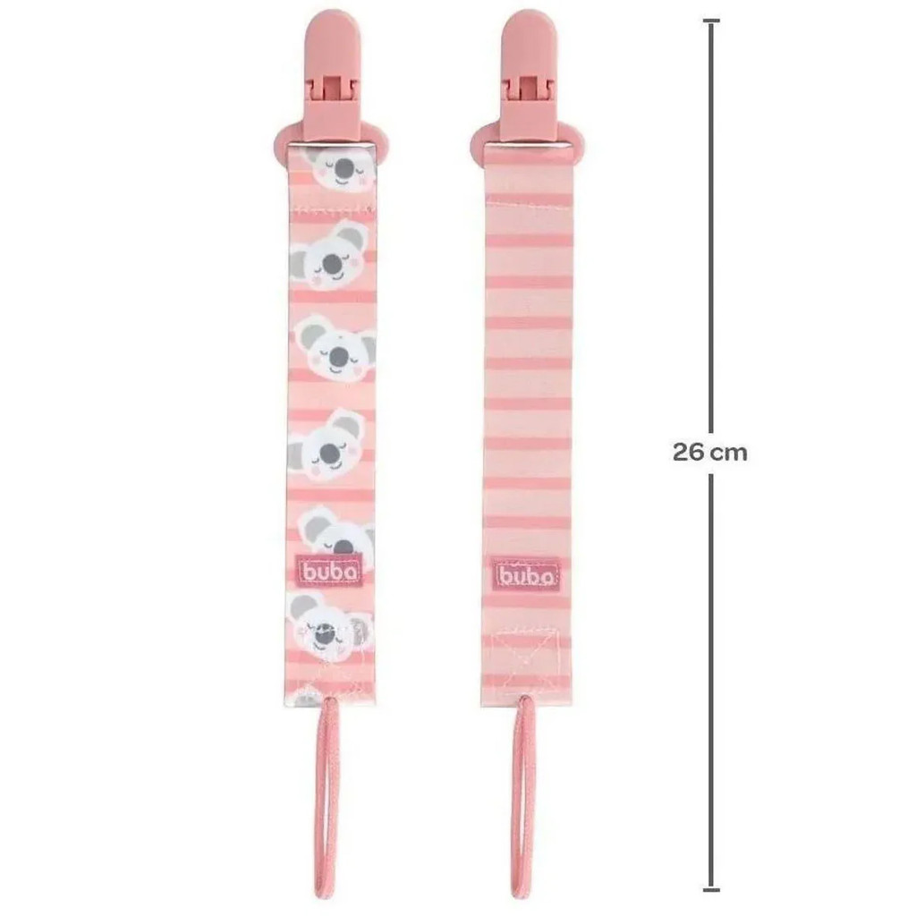 Kit 2 Prendedores de Chupeta Buba Com Clip Trava Coala Rosa