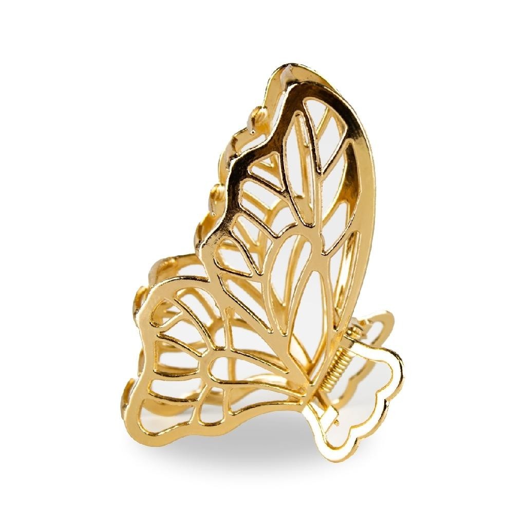 Kit 2 Presilhas Grande Prendedores de Cabelo Metal Dourado Borboleta Coração Penteados Acessório Cabelos