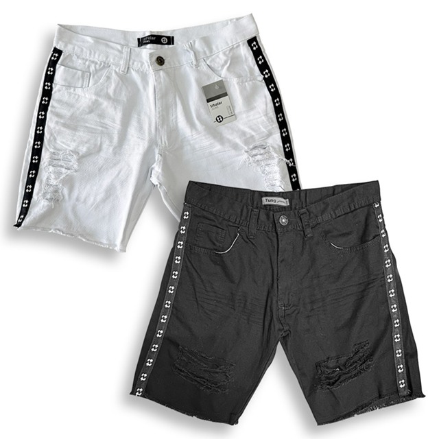 | Kit 2 Preto Branco Jeans Rasgado Masculino Bermudas Jeans Shorts Ca... este produto | R$ 49,90 | 29% | 4.7/5 | 140 |
