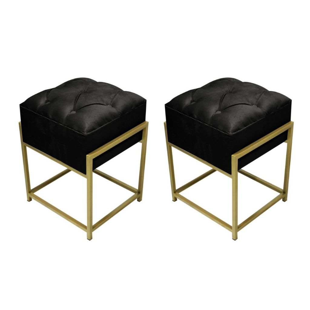 Kit 2 Puff Quadrado Para Penteadeira Pé Reto Capitonê Varias Cores Quarto Sala Recepção Base Dourado