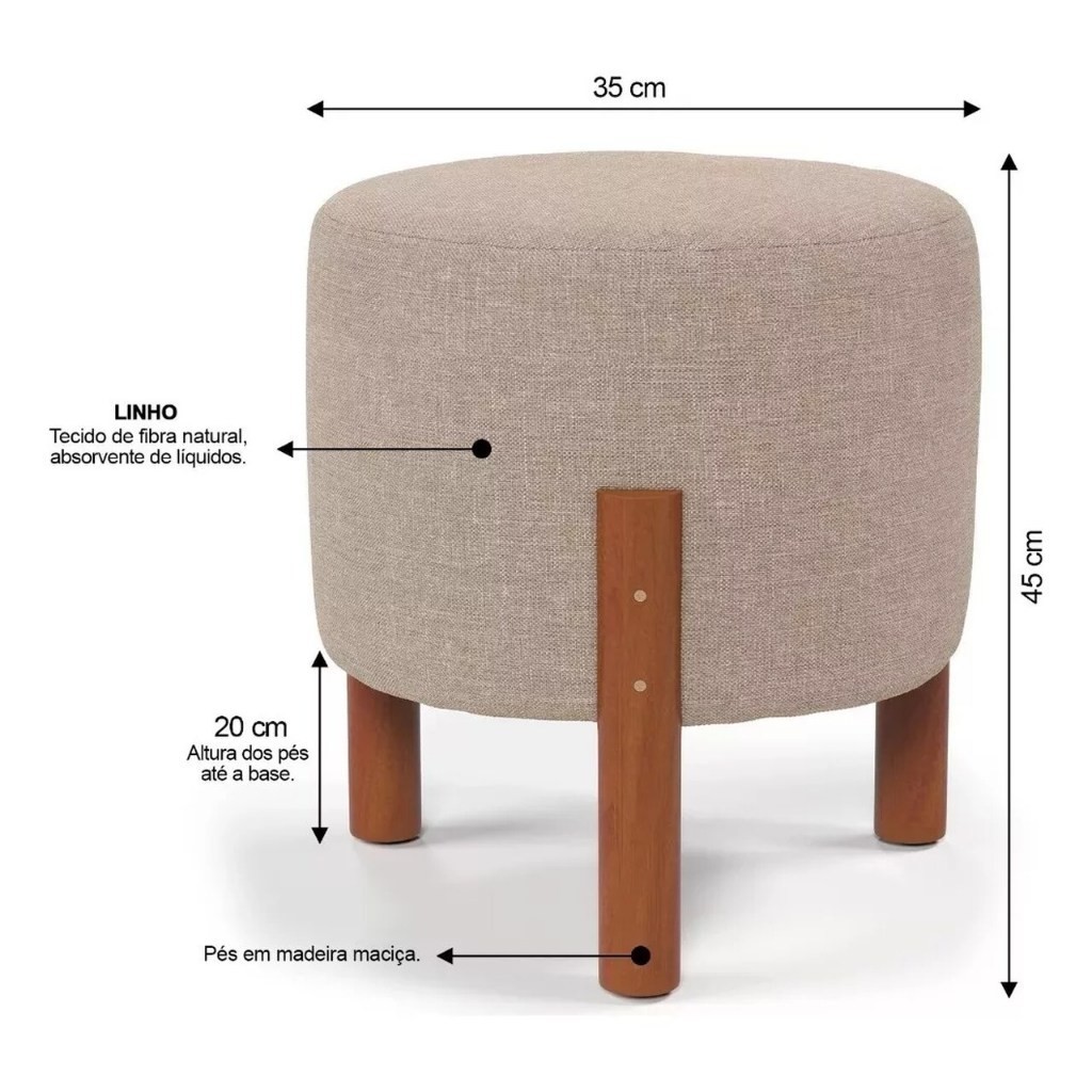 Kit 2 Puff Sala Banquinho Banqueta Linho Luxo Pés Madeira Maciça