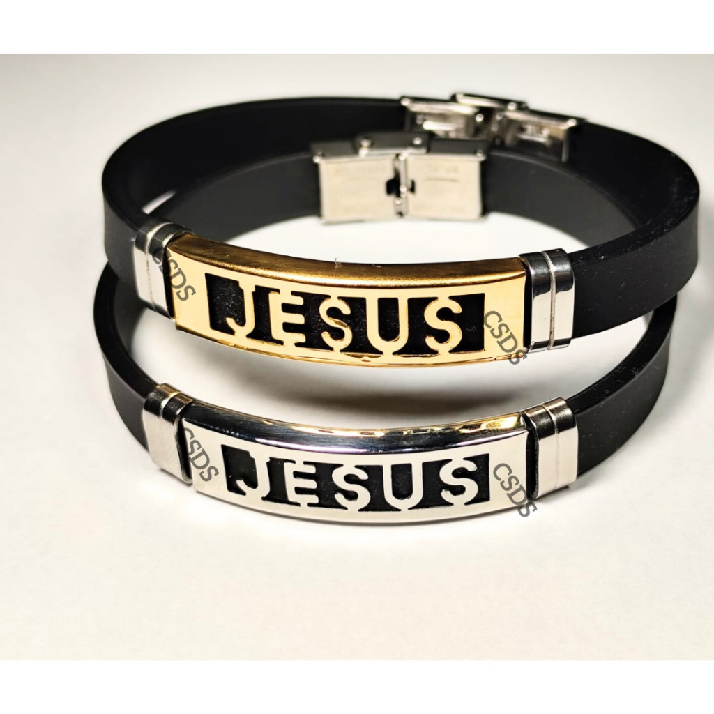 kit 2 Pulseira Masculina Feminina Silicone JESUS Placa Aço Inoxidável Ajustável Promoção Original