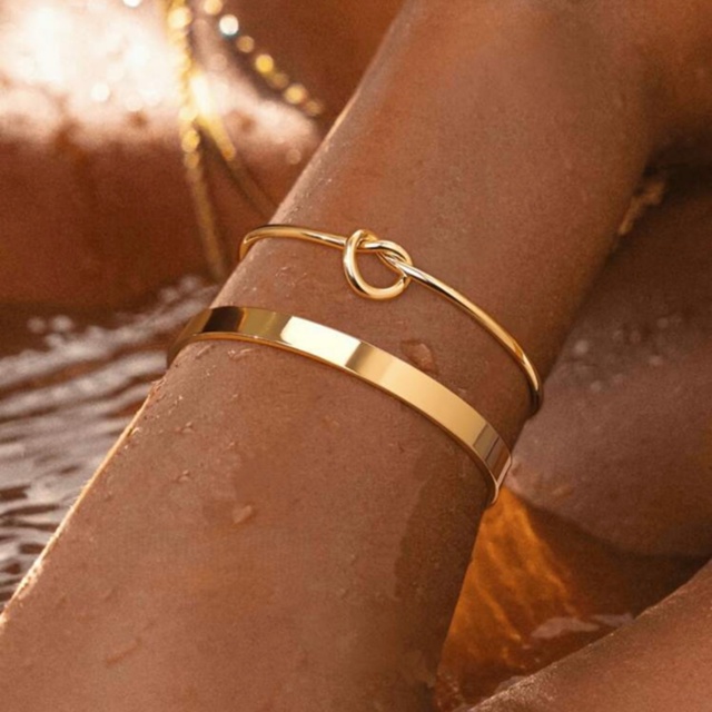 Kit 2 pulseiras de luxo femininas: Pulseira de nó em forma de coração + pulseira de metal liso