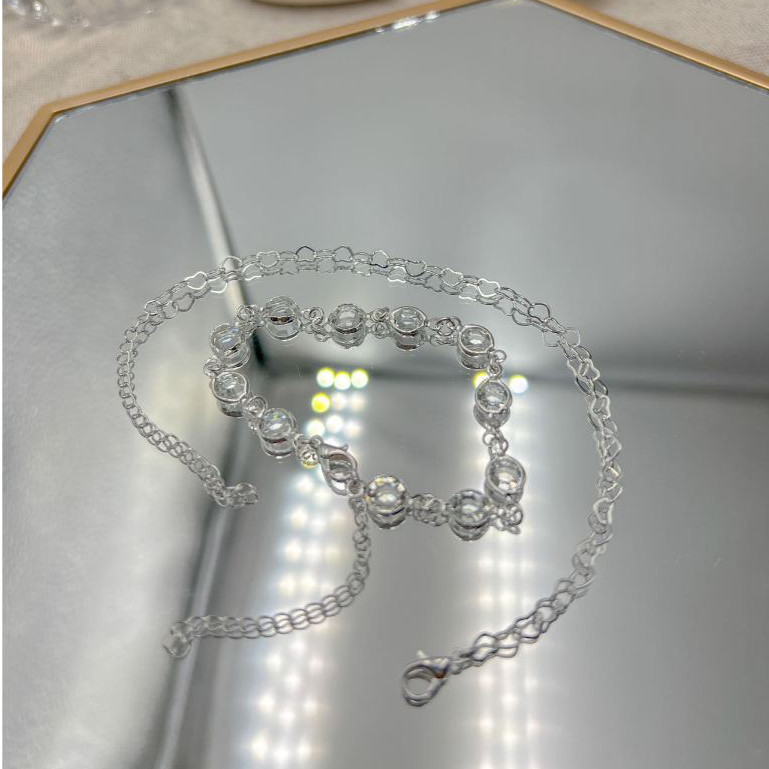 Kit 2 Pulseiras Prata 925 Folheada Coração Conjunto de Pulseira Feminina de Bolinha e Coração