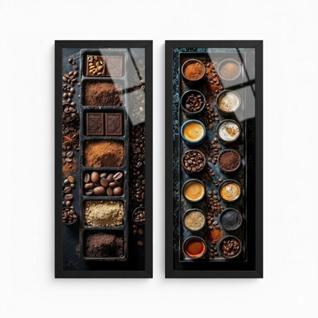 Kit 2 Quadros 18x45 cm café, cozinha, gourmet, moldura e vidro