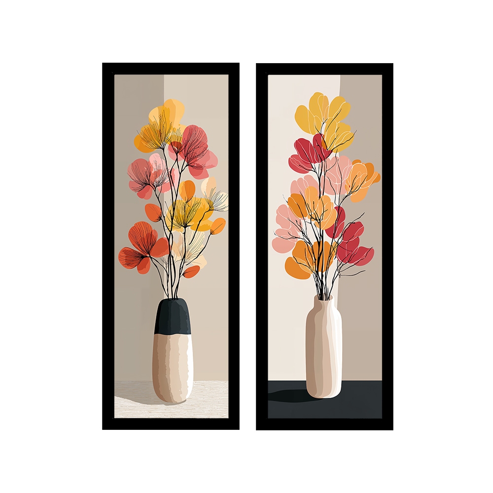 Kit 2 quadros 18x45 quarto, sala, escritório, vasos, flor
