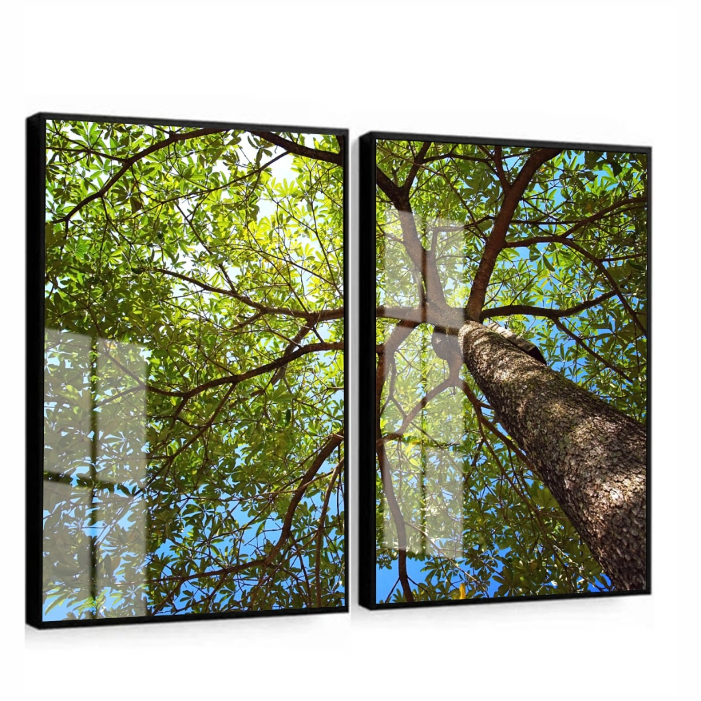 Kit 2 Quadros Árvore Paisagem Moldura e Vidro Sala Quarto Decoração