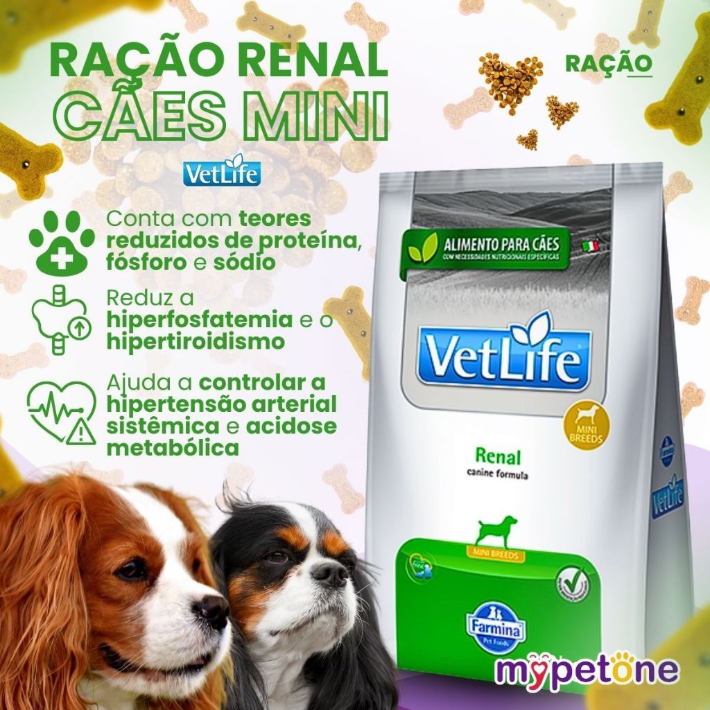 - Conta com teores reduzidos de proteína, fósforo e sódio; - Reduz a hiperfosfatemia e o hipertiroidismo; - Ajuda a controlar a hipertensão arterial sistêmica e acidose metabólica. - Este produto possui Satisfação Garantida. Saiba mais abaixo na descrição. Detalhes A Ração Farmina Vet Life Natural Renal para Cães Mini é um alimento que auxilia na recuperação de cachorros adultos com insuficiência renal crônica ou aguda e cardíaca inicial. Vet Life Renal melhora a qualidade de vida dos nossos companheiros de patas Dicas Especiais Vet Life Veterinary Formulated é uma linha de alimentos desenvolvidos para atender as necessidades nutricionais dos cachoros com quadros de obesidade, diabetes, problemas intestinais, renais ou urinários, processos alérgicos ou de intolerância alimentar. Antes de iniciar com esta ração, consulte o médico veterinário. Composição Quirera de arroz, ovo em pó, gordura de frango, óleo de peixe refinado, semente de linhaça, L-carnitina, L-lisina, DL-metionina, triptofano, taurina, parede celular de levedura (mannan-oligossacarídeos), fruto-oligossacarídeos, beta caroteno, hidrolisado de fígado suíno, vitaminas (A, D3, E, K3, B1, B2, B6, B12, C, H, PP, ácido pantotênico, ácido fólico, cloreto de colina), carbonato de cálcio, citrato de potássio, cloreto de potássio, transquelato de ferro, transquelato de cobre, transquelato de zinco, transquelato de manganês, transquelato de selênio, iodato de cálcio, propionato de cálcio, concentrado de tocoferóis.
