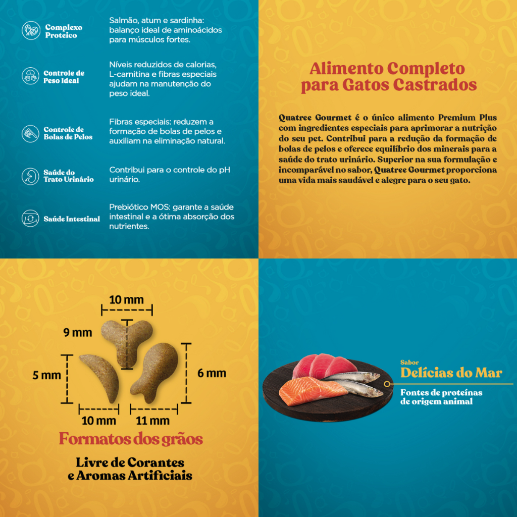 Kit 2 Ração Quatree Gourmet Gatos Castrados Delícias do Mar - 3Kg
