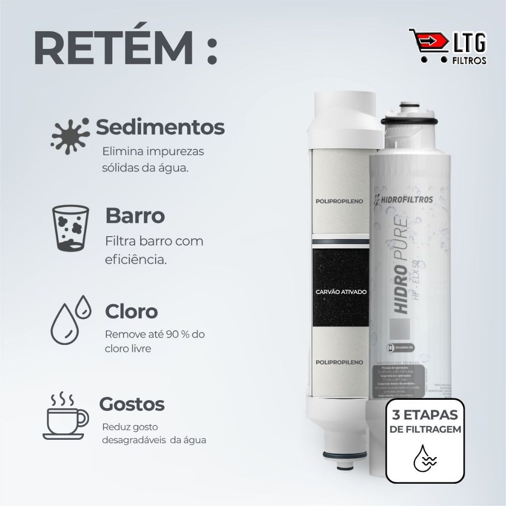Kit 2 Refis para Filtro de Água Electrolux PE12A / PE12B / PE12G / PE12V Características: Compatível com os modelos: PE12A, PE12B, PE12G e PE12V. Composição: polipropileno e carvão ativado com íons de prata. Filtragem em três etapas: barreira de polipropileno, carvão ativado, e nova camada de polipropileno. Reduz cloro, odores, gosto ruim da água, areia, barro e limo. Retenção de partículas: Classe C (5 a