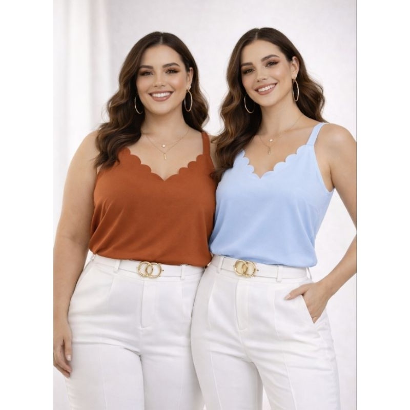 Regata Feminina Social Alcinha Crepinho com Decote Scallop Uma peça elegante, confortável e versátil para compor looks do dia a dia, trabalho e ambientes sociais. Com tecido crepinho, ela possui caimento leve, não marca, não amassa fácil e deixa um visual sofisticado em qualquer produção! ⭐ Destaques do Produto: ✔ Tecido Crepinho ✔ Decote scallop (ondulado) charmoso ✔ Toque macio ✔ Caimento leve ✔ Não marca no corpo ✔ Não amassa fácil ✔ Perfeita para trabalho, escritório, eventos e dia a dia ✔ Combina com jeans, alfaiataria, saia e blazer