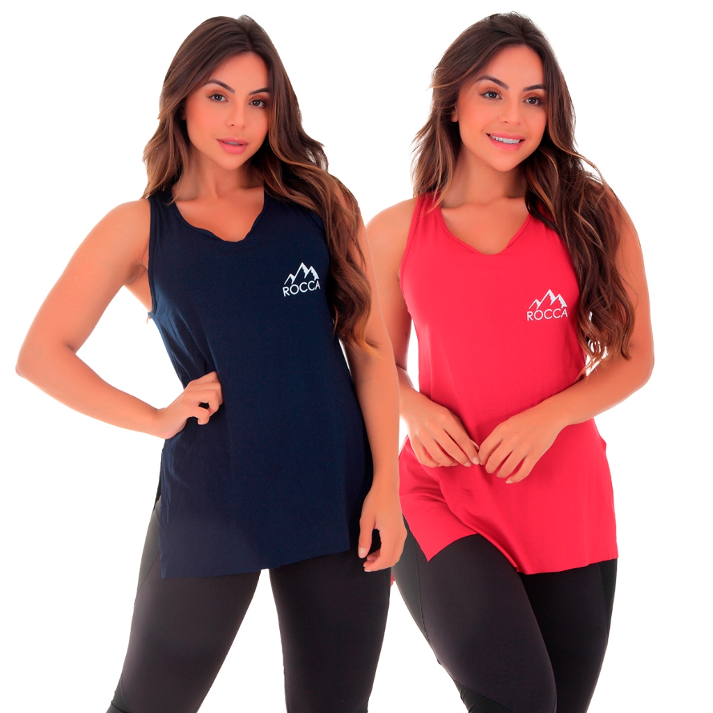 Kit 2 Regatas Femininas Fitness Rocca Tapa Bumbum Multicoloridos