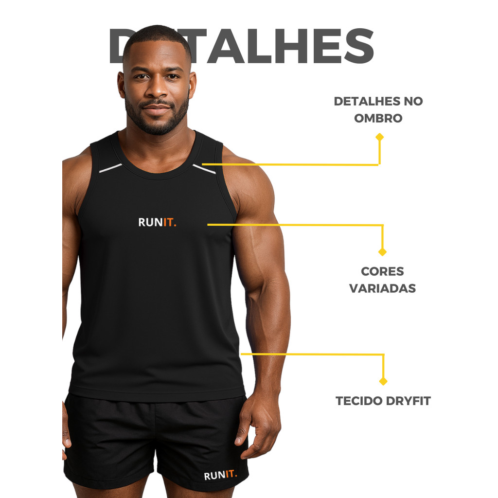 KIT 2 Regatas Masculinas DryFit Academia - 2 Regatas Dryfitness Masculina Academia Treino