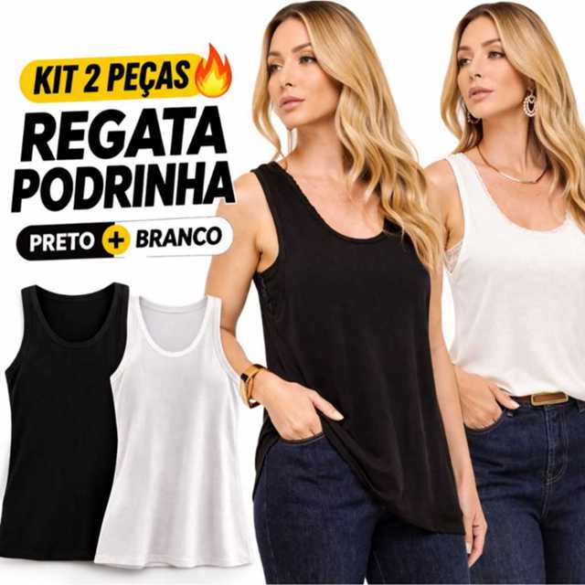 | Kit 2 Regatas Podrinha Feminina Preta e Branca Básica Leve Confortá... este produto | R$ 59,99 | — | 4.8/5 | 85 |