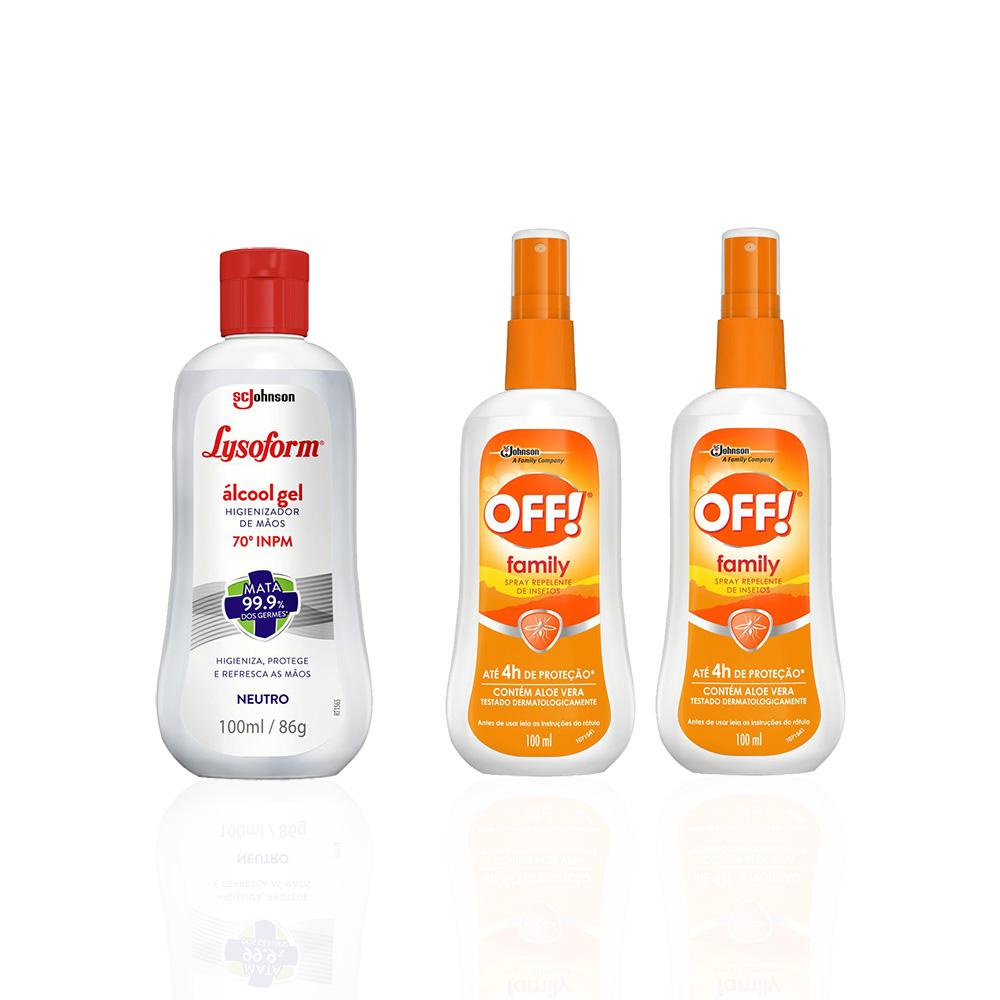 Kit 2 Repelente de Insetos Off! Spray 100ml + Álcool em Gel Lysoform Higienizador Neutro 100ml