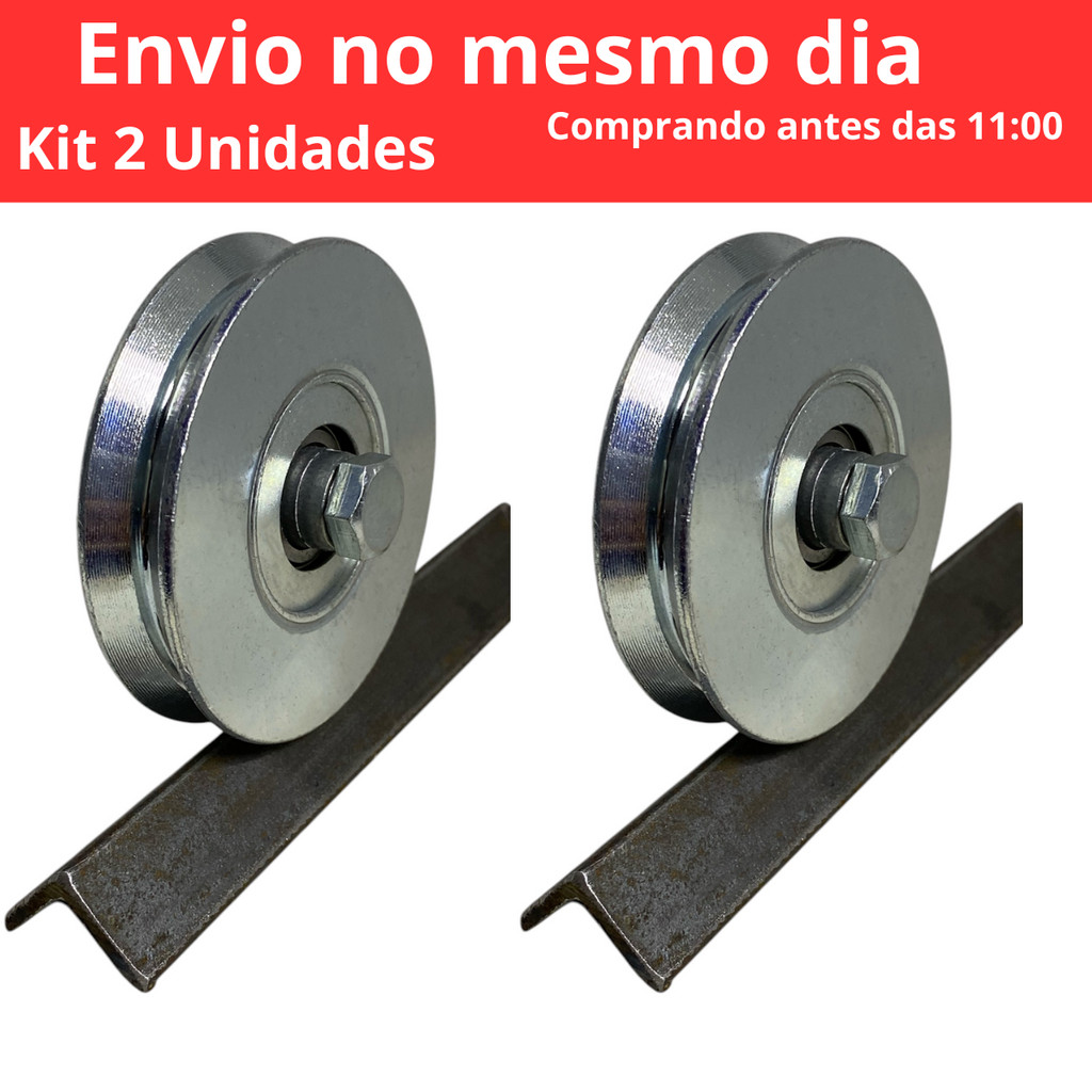 Kit 2 Roldana Aliaço Portão Correr Trilho Em V Cantoneira 2 1/2 Polegadas (6,2 cm)