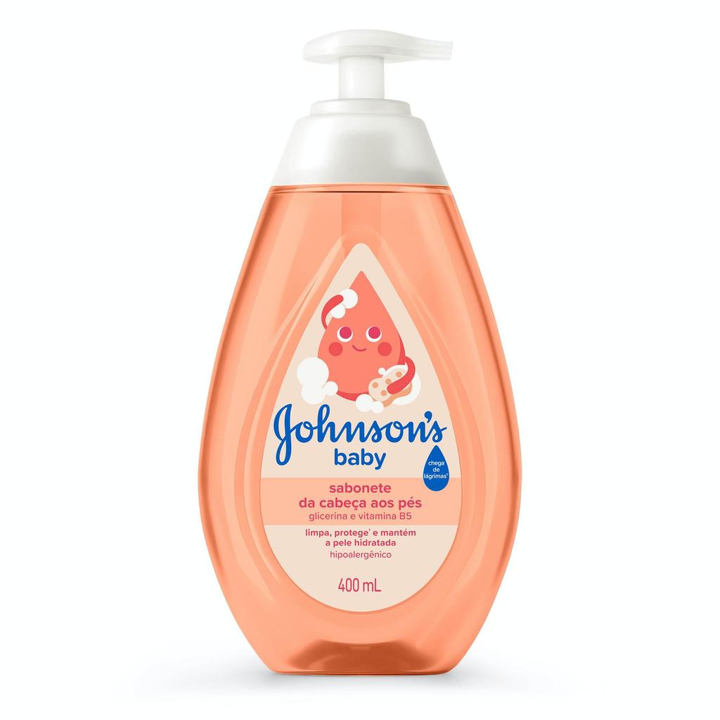 O Kit contém: 2 Sabonetes Líquido Johnson's Baby Cabeça aos Pés com 400ml cada. O Baby Sabonete Líquido de Glicerina JOHNSON'S® Da Cabeça aos Pés possui uma fórmula tão suave quanto a água pura para os olhos, a pele e o cabelo do bebê. Com pH fisiológico, é hipoalergênico e livre de parabenos, sulfatos, corantes e ftalatos.