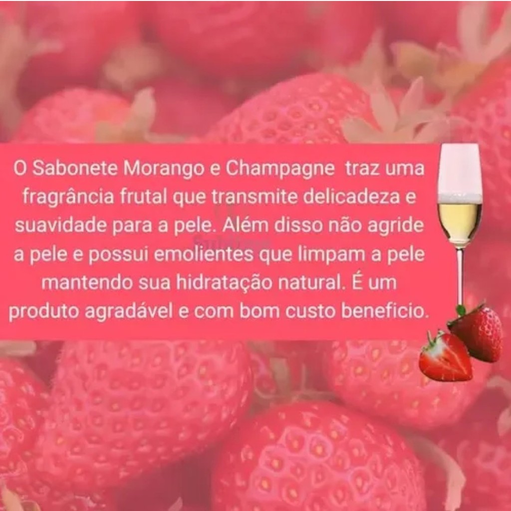 Kit 2 Sabonete Líquido Morango e Champagne 1 Litro – Premisse O Sabonete Líquido Morango e Champagne da Premisse foi desenvolvido para proporcionar uma limpeza suave, agradável e perfumada para as mãos e o corpo. Com fragrância sofisticada que combina notas de morango e champagne, o produto deixa a pele limpa, hidratada e levemente perfumada após o uso. Sua fórmula possui textura cremosa e espuma abundante, garantindo uma sensação de frescor e bem-estar durante o banho ou higienização das mãos. O frasco de 1 litro oferece excelente rendimento, sendo ideal para uso diário em residências, empresas, clínicas, academias e estabelecimentos comerciais. Destaques do Produto: • Fragrância de morango e champagne, suave e sofisticada • Limpeza delicada para mãos e corpo • Textura cremosa e espuma abundante • Proporciona sensação de maciez e refrescância • Embalagem de 1 litro com ótimo rendimento • Ideal para uso doméstico e profissional Modo de Uso: Aplicar o sabonete nas mãos ou no corpo, esfregar até formar espuma e enxaguar em seguida. Repetir se necessário. Informações Importantes: • Uso externo • Evitar contato com os olhos • Conservar em local seco, fresco e ao abrigo da luz • Manter fora do alcance de crianças Aviso Legal: Imagens meramente ilustrativas. Todas as informações divulgadas são de responsabilidade exclusiva do fabricante/fornecedor.