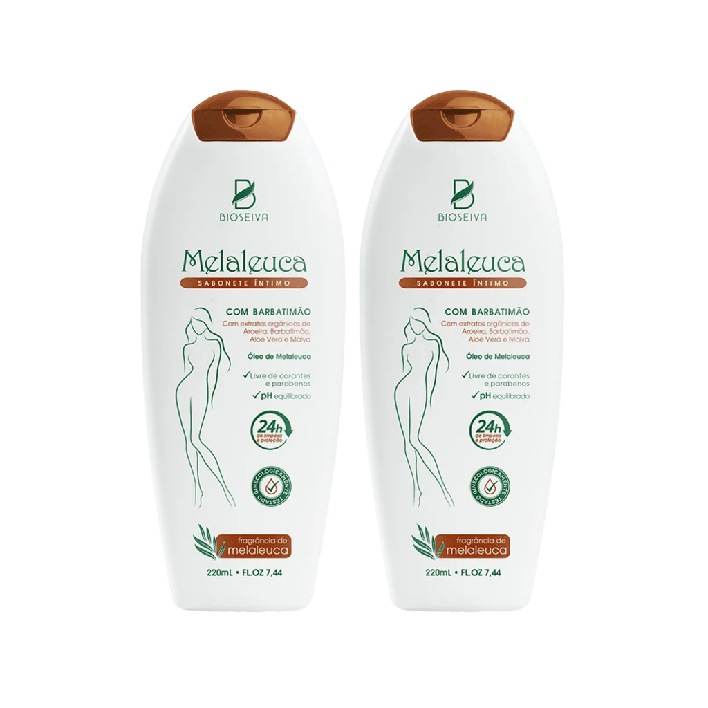 Kit 2 Sabonetes Íntimos BioSeiva Melaleuca Barbatimão 220mL | pH Ideal, Ação Antisséptica e Frescor