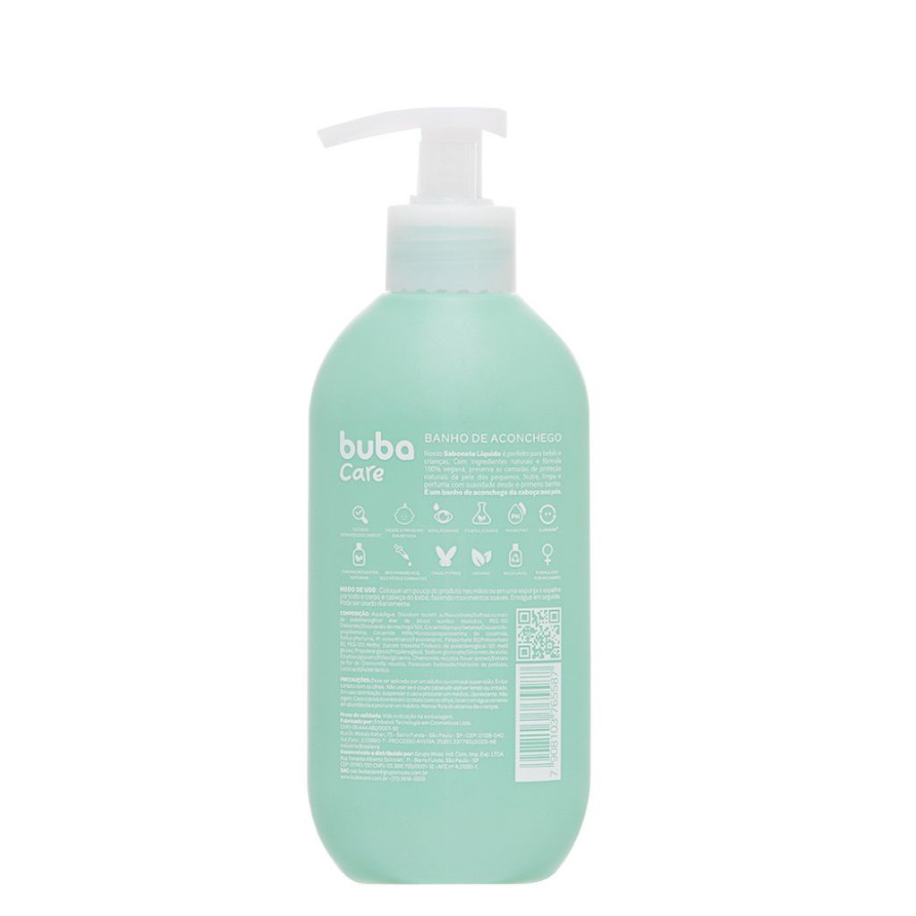 DESCRIÇÃO DO PRODUTO: Nosso Sabonete Líquido da cabeça aos pés da buba é perfeito para bebês e crianças. Dermatologicamente testado com ingredientes naturais e fórmula 100% vegana, preserva as camadas de proteção naturais da pele dos pequenos. Não arde os olhos, nutre, limpa e perfuma com suavidade desde o primeiro banho. pH neutro pode ser usado desde o primeiro dia de vida, sem parabenos, sulfatos e corantes. É um banho de aconchego da cabeça aos pés. Conheça toda a linha buba care formulado por mulheres! CARACTERÍSTICAS TÉCNICAS: Conteúdo da Embalagem: 02 Sabonetes Líquidos 250ml Buba Care. Dimensões Aproximadas do Produto: 18cm x 6cm x 4cm (Altura x Largura x Comprimento/Profundidade) Dimensões Aproximadas da Embalagem: 20cm x 7cm x 5cm (Altura x Largura x Comprimento/Profundidade) Composição: Ingredientes: Aqua/Água, Disodium laureth sulfosuccinate/Sulfossuccinato de polietilenoglicol éter de álcool laurílico dissódico, PEG-150 Distearate/Diestearato de macrogol 100, Cocamidopropyl betaine/Cocoamidopropilbetaína, Cocamide MIPA/Monoisopropanolamina de cocamida, Parfum/Perfume, Phenoxyethanol/Fenoxietanol, Polysorbate 80/Polissorbato 80, PEG-120 Methyl glucose trioleate/Trioleato de polietilenoglicol-120 metil glicose, Propylene glycol/Propilenoglicol, Sodium gluconate/Gluconato de sódio, Ethylhexylglycerin/Etilexilglicerina, Chamomilla recutita flower extract/Extrato da flor de Chamomilla recutita, Potassium hydroxide/Hidróxido de potássio, Lactic acid/Ácido láctico. Idade Mínima Recomendada: A partir de 0+ meses. Marca: Buba Referência: 16558 Outras informações: As cores podem variar entre as imagens mostradas acima e o produto. Imagens meramente ilustrativas. Aviso: As informações e imagens divulgadas são de total responsabilidade do fabricante/fornecedor. Produto lacrado e disponível a pronta entrega para todo Brasil!