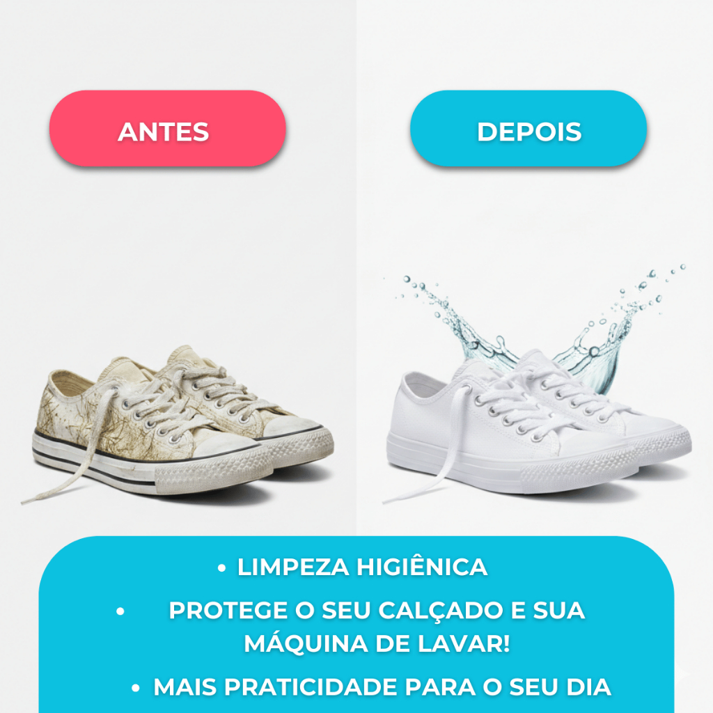 Kit 2 Saco De Lavagem Para Tênis Sapatos Reutilizável Com Zíper Reforçado Interior Com Cerdas Protetoras Para Máquina De Lavar Limpeza Shokki O Saco de Lavagem para Tênis e Sapatos é a solução ideal para manter seus calçados sempre limpos sem esforço. Desenvolvido especialmente para uso em máquina de lavar, ele protege tanto o calçado quanto a lavadora, evitando danos durante o ciclo. Seu interior possui cerdas macias que auxiliam na remoção da sujeira, proporcionando uma limpeza mais eficiente e suave. O fechamento com zíper reforçado garante segurança, praticidade e durabilidade, sendo um item reutilizável e resistente. Disponível nas cores cinza e bege, é perfeito para facilitar sua rotina de cuidados com os calçados, garantindo proteção e eficiência. Especificações Técnicas: • Modelo: Saco de Lavagem para Calçados • Indicação: Tênis e sapatos em geral • Uso: Máquina de lavar roupas • Material: Tecido resistente com interior de cerdas macias • Fechamento: Zíper reforçado FAQ (Perguntas Frequentes): 1. Pode ser usado para qualquer tipo de calçado? Sim, é ideal para tênis, sapatos casuais e esportivos. 2. Ele estraga a máquina de lavar? Não, ele protege a lavadora contra atritos e impactos. 3. Quantos pares cabem? Cabe 1 par por lavagem para maior eficiência na limpeza. 4. Posso usar em lavagem pesada? Sim, o material resistente suporta ciclos mais intensos. Conteúdo da Embalagem: • 02 Saco de Lavagem para Tênis/Sapatos Importante: Valor do Kit Imagens Meramente Ilustrativas Não nos responsabilizamos pelo mau uso do produto