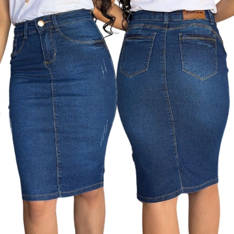 | Kit 2 Saias jeans Midi Com Elastano Cintura Alta Secretária Moda Ev... este produto | R$ 127,42 | 15% | 4.8/5 | — |